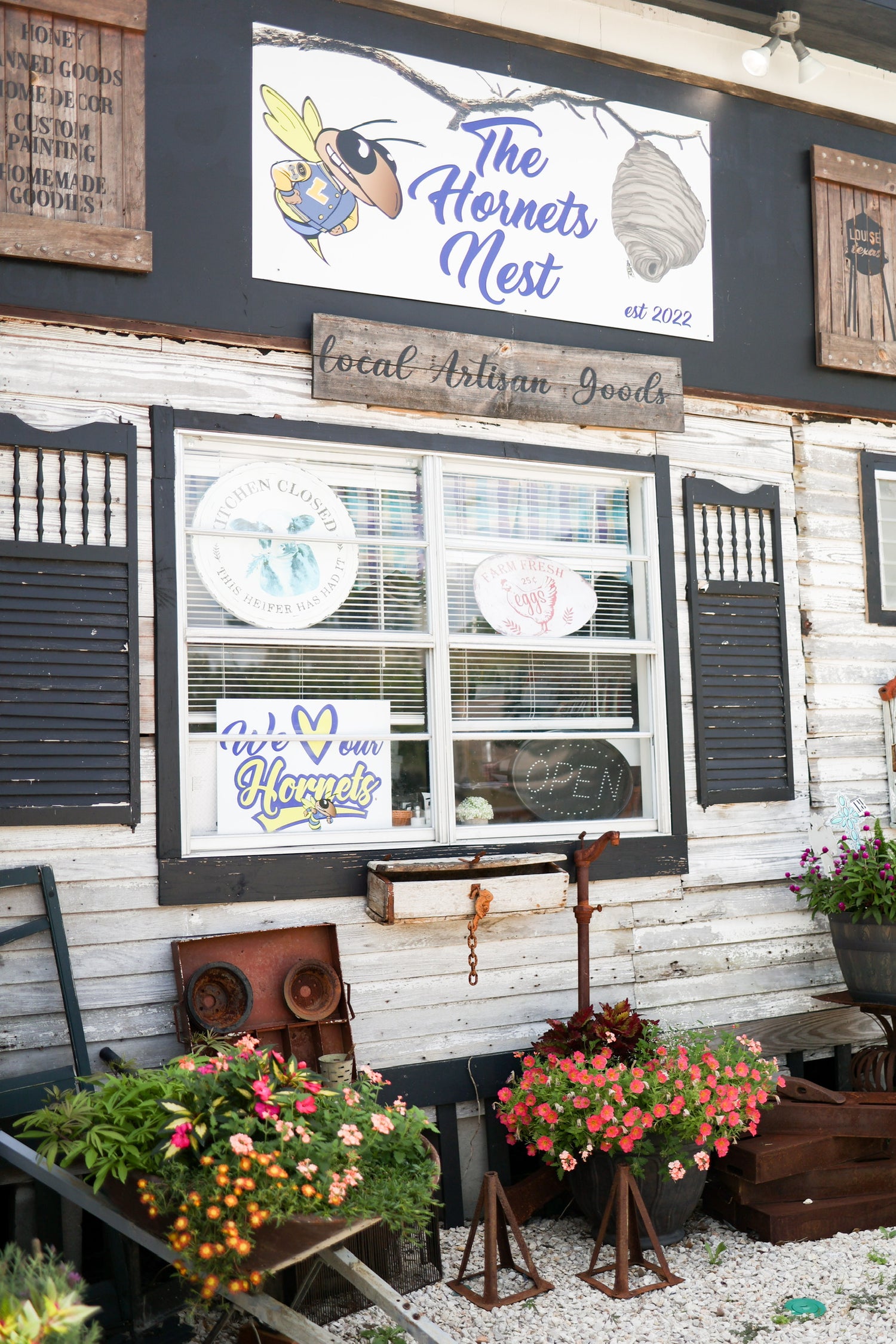 The Hornets Nest is located in the heart of Louise, Texas, in a former Pentecostal church built in the 1930’s. We welcome you to our 2000-square-foot shopping mecca where you will find a myriad of local offerings and artisanal products from thirty-five different vendors.