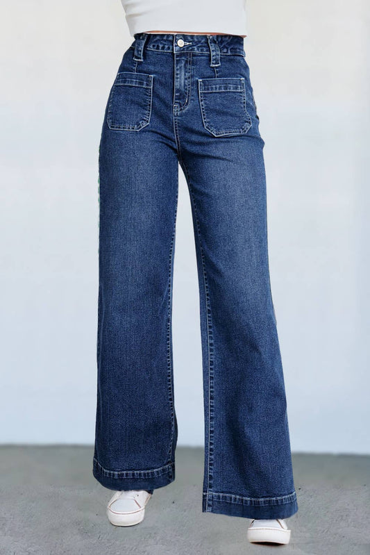 Blue Wide Leg Pockets High Waist Jeans | 6-16