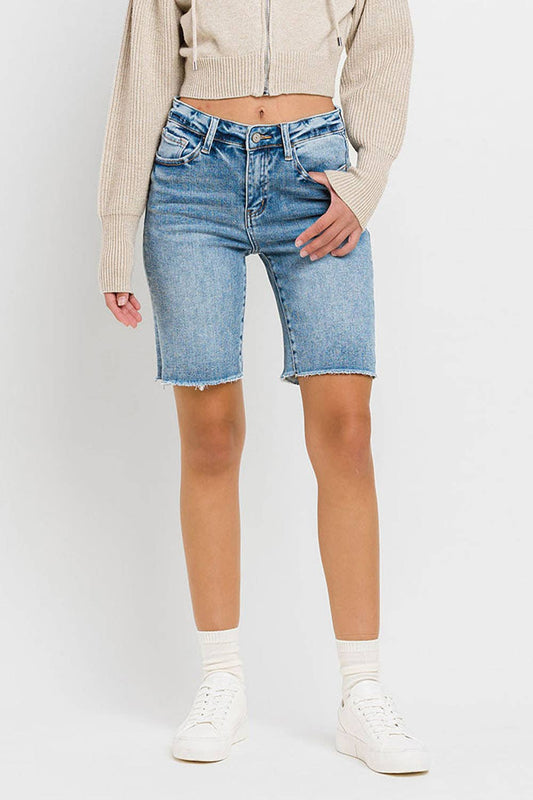 HIGH RISE RAW HEM BERMUDA SHORTS - Vervet