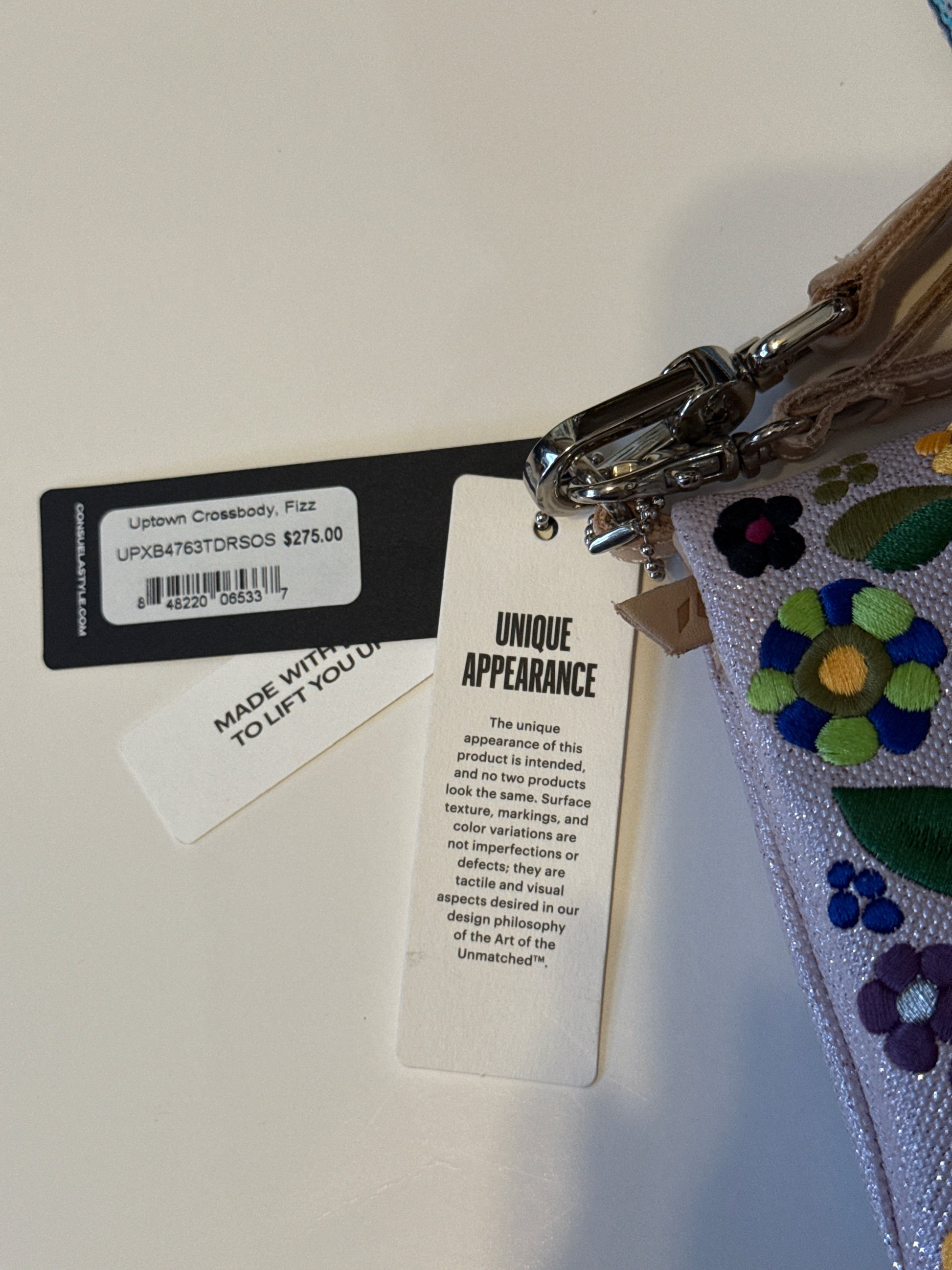 - Included detachable wristlet strap and adjustable woven crossbody strap
