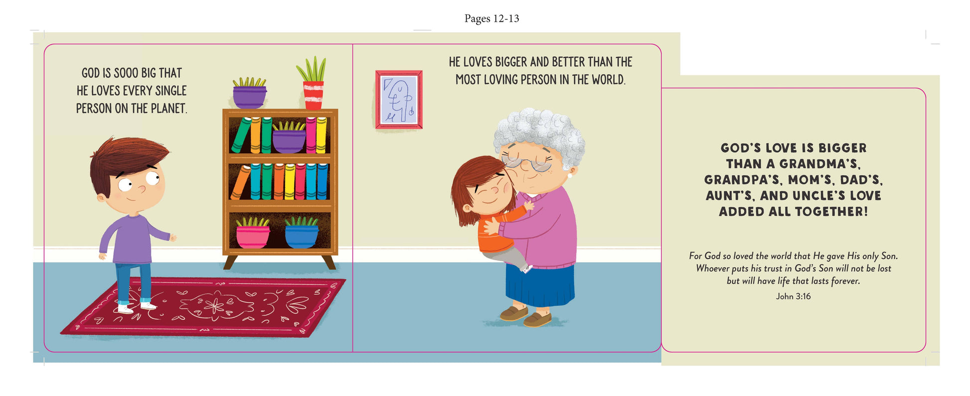 This delightful, interactive lift-a-flap board book for the little ones in your life is a fantastic way to help them understand that God is bigger than they could ever possibly imagine. Each spread features fun, simple text that celebrates God's amazing awesomeness alongside colorful illustrations and easy-to-understand New Life Version scripture selections.