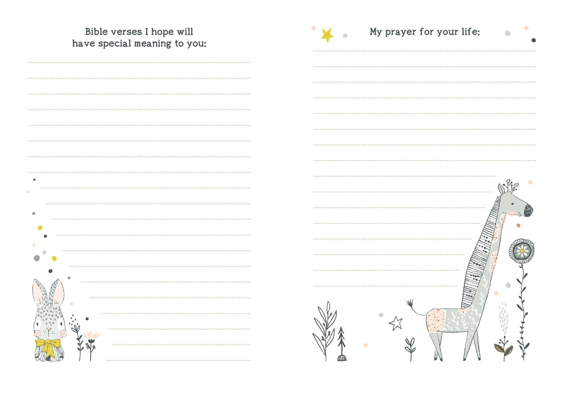 Featuring the complete text of the King James Version in a sturdy hardcover binding, this Kept in My Heart KJV Bible includes 24 full-color pages featuring adorable artwork and lined space for capturing the exciting and important details of your child’s early years: