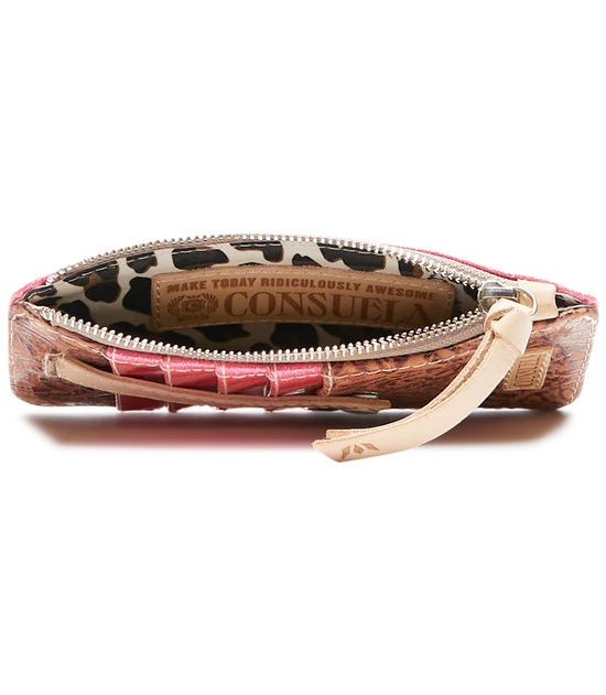 Keeping things light and easy, the card organizer is perfect for credit cards and folded bills. This wallet’s snap-closure and zipper compartment provides security while you take on the day.